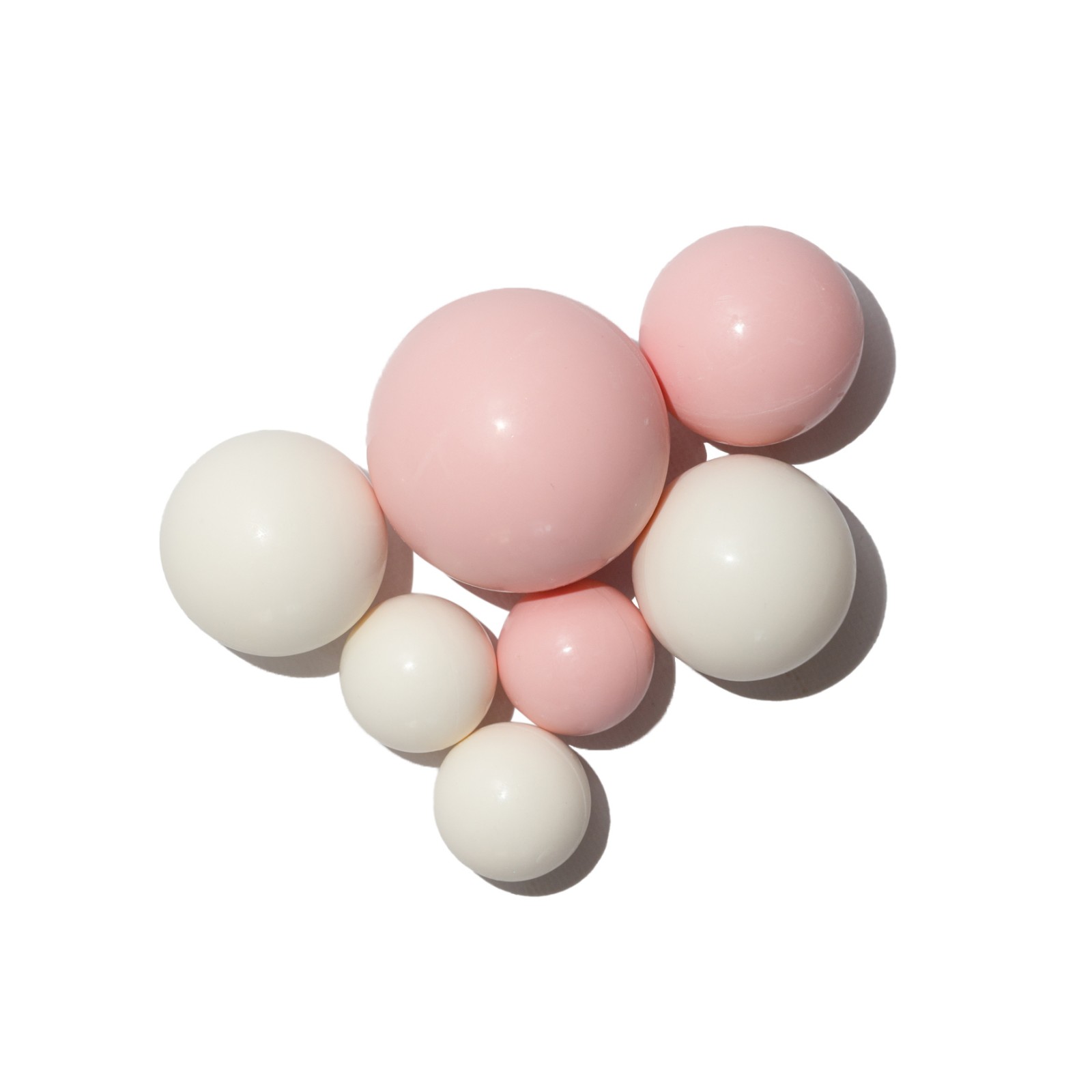 Dekoracje czekoladowe Sfery kule białe/różowe zestaw 7 szt