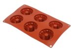 Kolor formy przedstawiony na zdjęciu, jest kolorem orientacyjnym.</p><p>Forma silikonowa do wypieku małych babeczek ( 6 babeczek na formie ) wymiary gniazda : średnica 70 mm, wysokość 38mm</p><p>Forma do pieczenia wykonana jest ze specjalnego materiału silikonowego i dlatego posiada szereg wyjątkowych właściwości:</p><p>-odporna na temperatury °C</p><p>-nadaje się do mycia w zmywarce</p><p>-nie przypala, nie przywiera</p><p>INSTRUKCJA UŻYTKOWANA</p><p>Przed pierwszy użytkowaniem należy formę dokładnie umyć, wysuszyć i powierzchnie wewnętrzną nasmarować- najlepiej białym tłuszczem jadalnym, przy kolejnym użytkowaniu smarowanie nie jest już konieczne.</p><p>Formę należy nasmarować wówczas, gdy tłuszcz z jej powierzchni zostanie usunięty- np. przez częste mycie w zmywarce do naczyń. Formy nie należy wysypywać np. mąką.