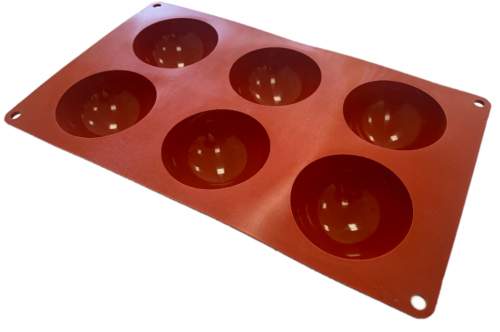 Forma silikonowa Genes - półkule o średnicy 70 mm i wysokości 35 mm przeznaczona do wykonania pięknych deserów mrożonych jak i pieczonych ciast. Wykonana z wysokiej jakości silikonu pozwala na łatwe wyciągnięcie deseru z formy bez konieczności natłuszczenia formy.</p><p>Charakterystyka produktu forma silikonowa Genes półkule śr. 70 mm: Ilość form w opakowaniu: 1 szt. Ilość gniazd: 6 szt Wymiary: 300 mm x 175 mm, wys. 35 mm Wymiary gniazd: średnica 70 mm, wysokość: 35 mm Materiał: silikon Model: Półkule F-103 Kolor formy: czerwony Zastosowanie w temperaturach: -60 st. C do +230 st. C Można używać w piekarniku, lodówce, zamrażarce, mikrofalówce Zastosowanie: ciasta pieczone/ desery mrożone/ chłodzenie strumienowe Kraj pochodzenia: Polska Jak wykorzystać Formę silikonową Genes półkule śr. 70 mm, h 35 mm - 6 gniazd: Forma Genes pozwoli na przygotowanie różnego rodzaju słodkości, które łączą w sobie różne smaki i tekstury. Można ją wykorzystać do przygotowania deserów glazurowanych oraz zamszowanych. Forma silikonowa Genes półkule przyda się przy tworzeniu słodkości zarówno na słodkie stoły jak i na różnego rodzaju uroczystości jak na przykład urodziny, wesela, komunie, chrzciny, imieniny i wiele innych. Produkt nie chłonie zapachów, nie nasiąka płynami. Łatwy w czyszczeniu i użytkowaniu. Można myć w zmywarce.</p><p>Podczas przygotowania deserów mogą się przydać dostępne w naszej ofercie zamsze, aromaty oraz glazury.</p><p>Producent: Zakład Wyrobów Gumowych