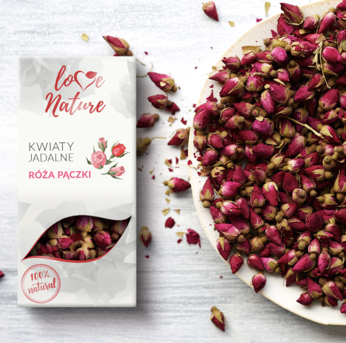 Urokliwe i aromatyczne pączki róży zapewniają „efekt wow!” na wypiekach i deserach. Niezastąpiona dekoracja w każdej cukierni i domowej kuchni. Pączki sprawdzają się jako dodatek do herbat i mieszanek owocowych, zapewniając wspaniały zapach i składniki odżywcze.