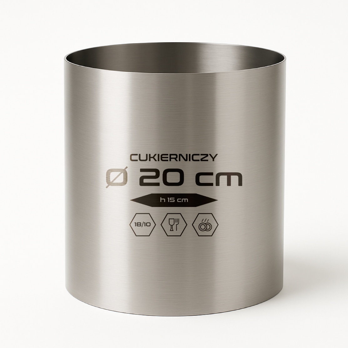 Rant okrągły cukiernicze ze stali nierdzewnej Wysokiej jakości kółko cukiernicze wykonane ze stali nierdzewnej, idealne do formowania i wypieku różnorodnych deserów oraz ciast.</p><p>Średnica: 200 mm Wysokość: 150 mm Grubość ścianki: 1 mm</p><p>Odporne na wysokie temperatury, łatwe w czyszczeniu i trwałe. Doskonałe do przygotowywania tortów warstwowych, musów i innych wypieków wymagających precyzyjnego kształtu