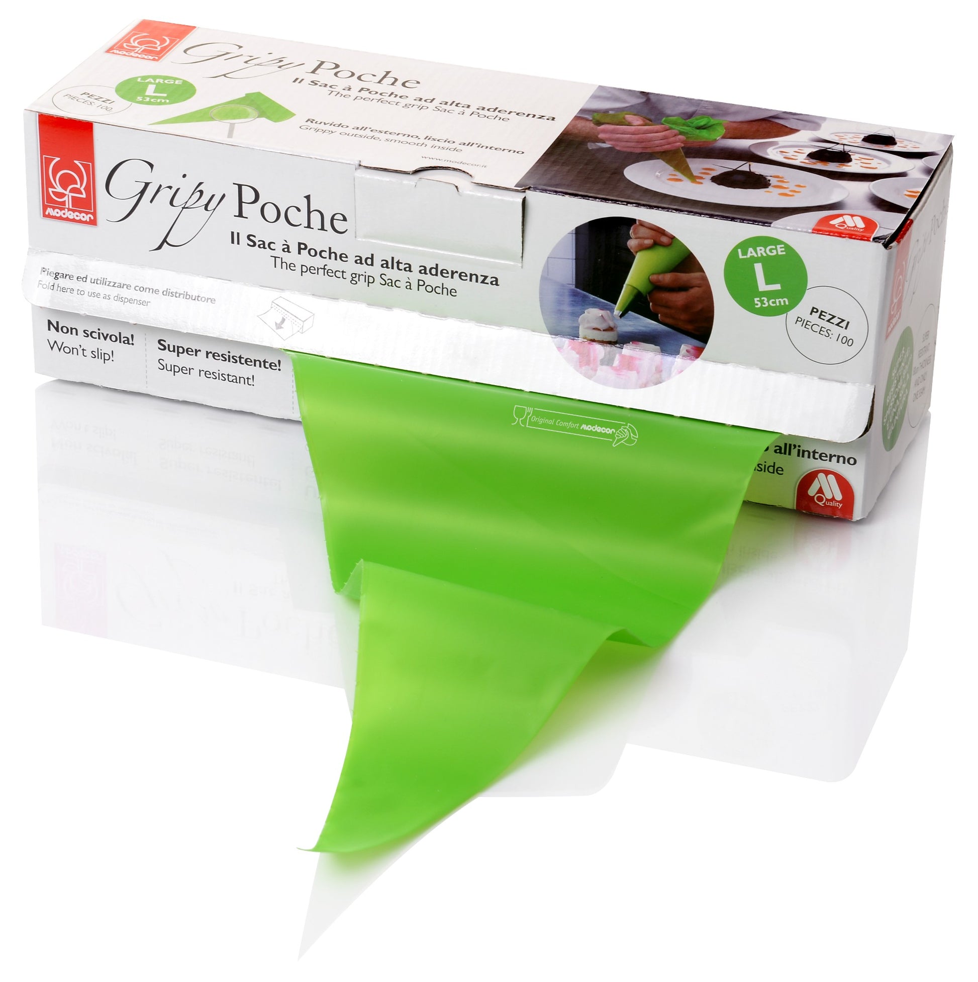 Rękaw cukierniczy GRIPY 28×53 MODECOR to wysokiej jakości worek cukierniczy wykonany z trwałego i elastycznego materiału. Idealny do dekorowania tortów, babeczek oraz innych deserów. Wymiary 28×53 cm zapewniają wygodę użytkowania zarówno dla profesjonalistów, jak i amatorów. Worek jest łatwy do mycia i wielokrotnego użytku, co czyni go praktycznym narzędziem w kuchni.