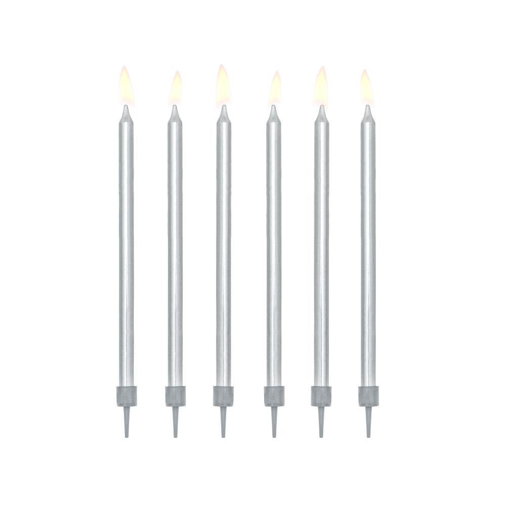 Świeczki urodzinowe gładkie, srebrny,12,5cm: 12szt.