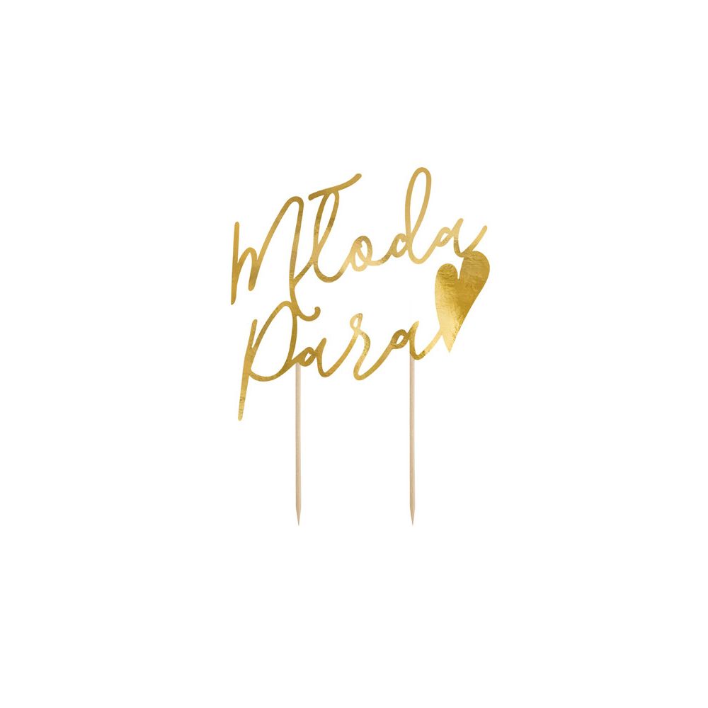TOPPER NA TORT MŁODA PARA, ZŁOTY